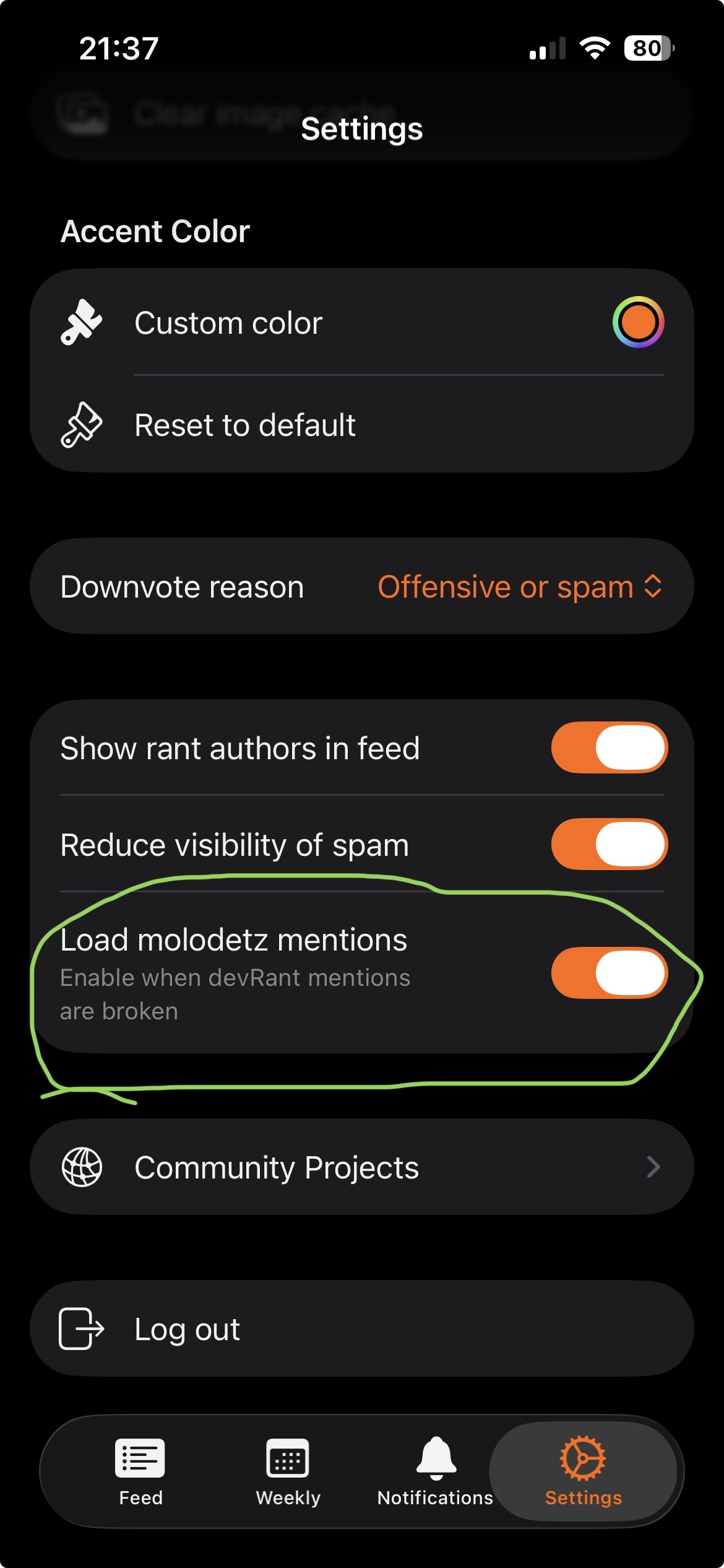 It can be disabled in the settings, if devRant's mentions will come back one day.